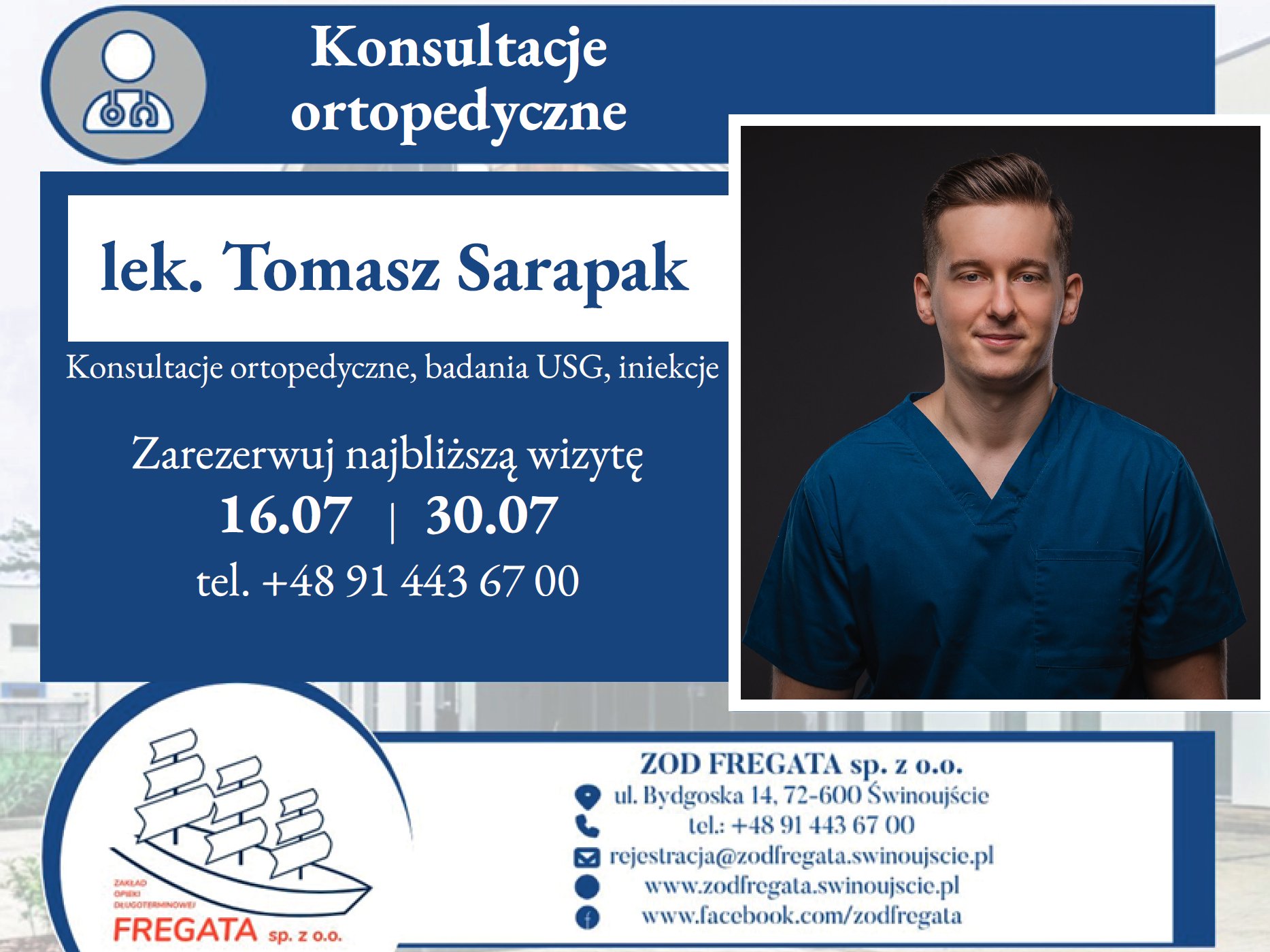 Z radością informujemy, że do naszego zespołu dołączył lek. Tomasz Sarapak – specjalista ortopedii, który przyjmuje pacjentów w naszej poradni ambulatoryjnej.