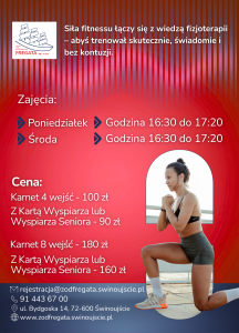 Zapraszamy na FizjoPower – zajęcia, które łączą elementy fitnessu i fizjoterapii.